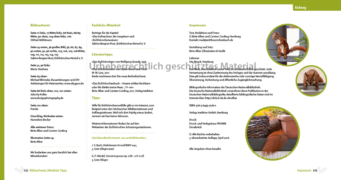 Die vielen außergewöhnlichen Fotos, die dabei entstanden, illustrieren die Texte und begeistern mit „Ganz-nah-dran”-Motiven.Als Kulturfolger erobern Eichhörnchen zunehmend die Stadt und treffen dort auf eine neue Lebenssituation. Auch davon berichtet „Eichhörnchen entdecken!” und bietet Eichhörnchenfreunden Tipps, wie sie die wilden Nachbarn unterstützen können.Die eigenen Erfahrungsberichte werden ergänzt mit Beiträgen über Eichhörnchenfindlinge und das Aufwachsen der Jungtiere, von der Eichhörnchenexpertin Sabine Bergner-Rust vom Eichhörnchen Notruf e.V.